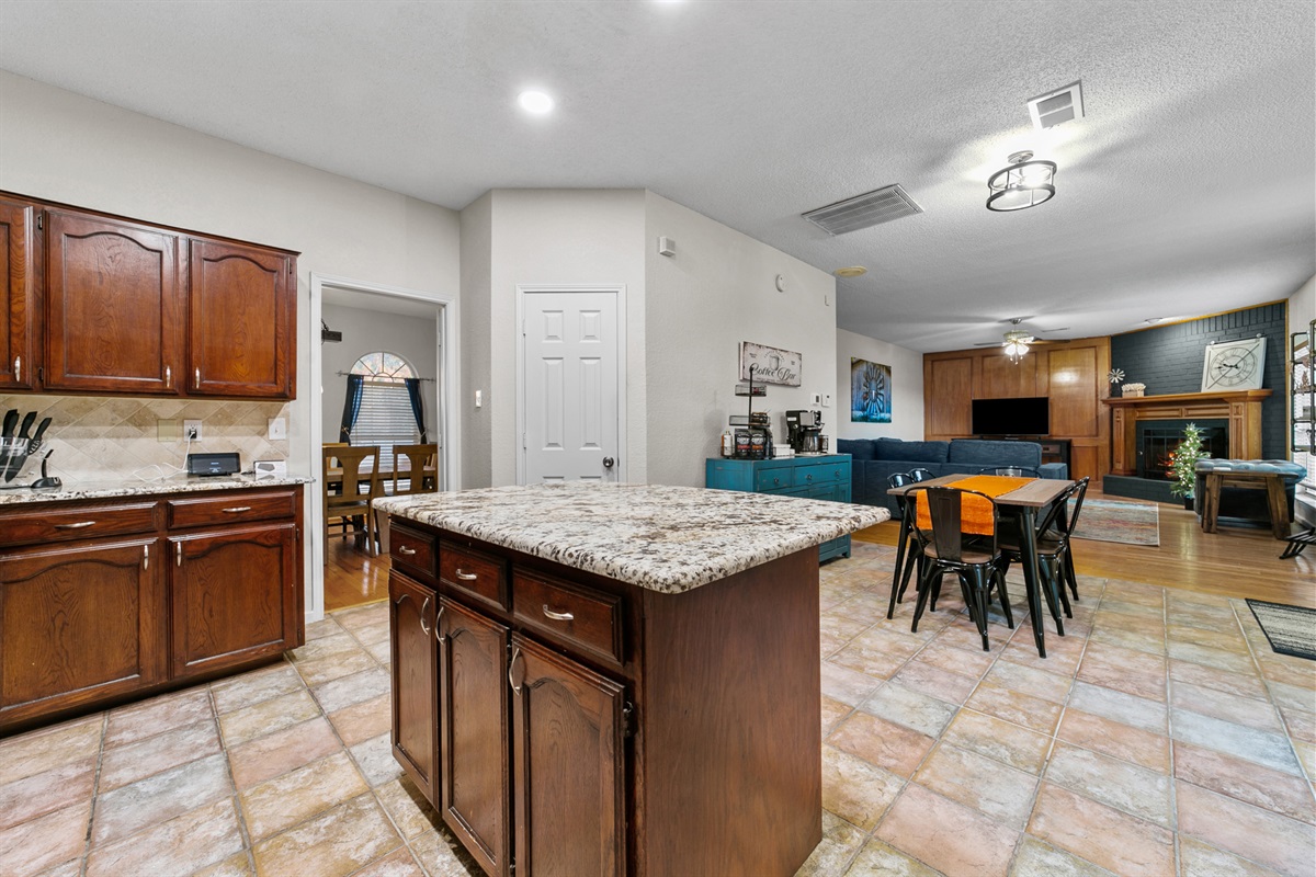 - Open concept floor plan connects the kitchen and living area to draw your family closer together. This great space opens to the back yard to enjoy the great pool, patio, and spa
